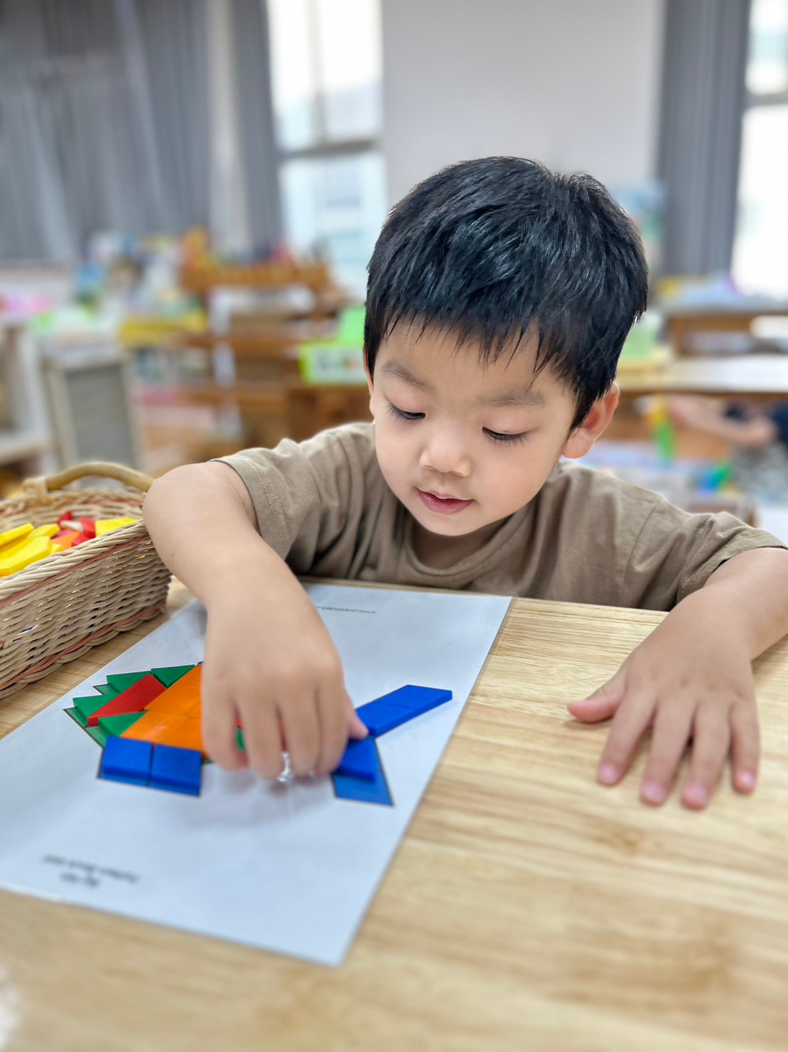 六形六色教具 可透過底圖與板的結合圖像,充滿建構的能力建立。